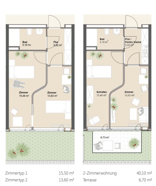 Die Modernisierung des EV. Altenzentrums in Bruchsal erfolgte, mit viel Rücksicht auf Bewohnende und Mitarbeitende, im laufenden Betrieb. Durch Vorgaben der Landesheimbauverordnung sowie energetische und bauliche Anforderungen, schafft das Projekt zukunftsfähige Strukturen für das Wohnen im Alter. Ein zentrales Element sind die Einzelpflegezimmer in überschaubaren Wohngruppen – ganz im Sinne eines modernen Pflegeverständnisses. Die besondere Architektur des Terrassenhauses wird gezielt eingesetzt: Alle Wohnbereiche verfügen über einen direkten Zugang zu den begrünten Terrassen, die nicht nur Aufenthaltsqualität bieten, sondern auch eine unmittelbare Verbindung zur Natur ermöglichen. Somit ist der Wandel der Jahreszeiten für alle Bewohnenden erlebbar.